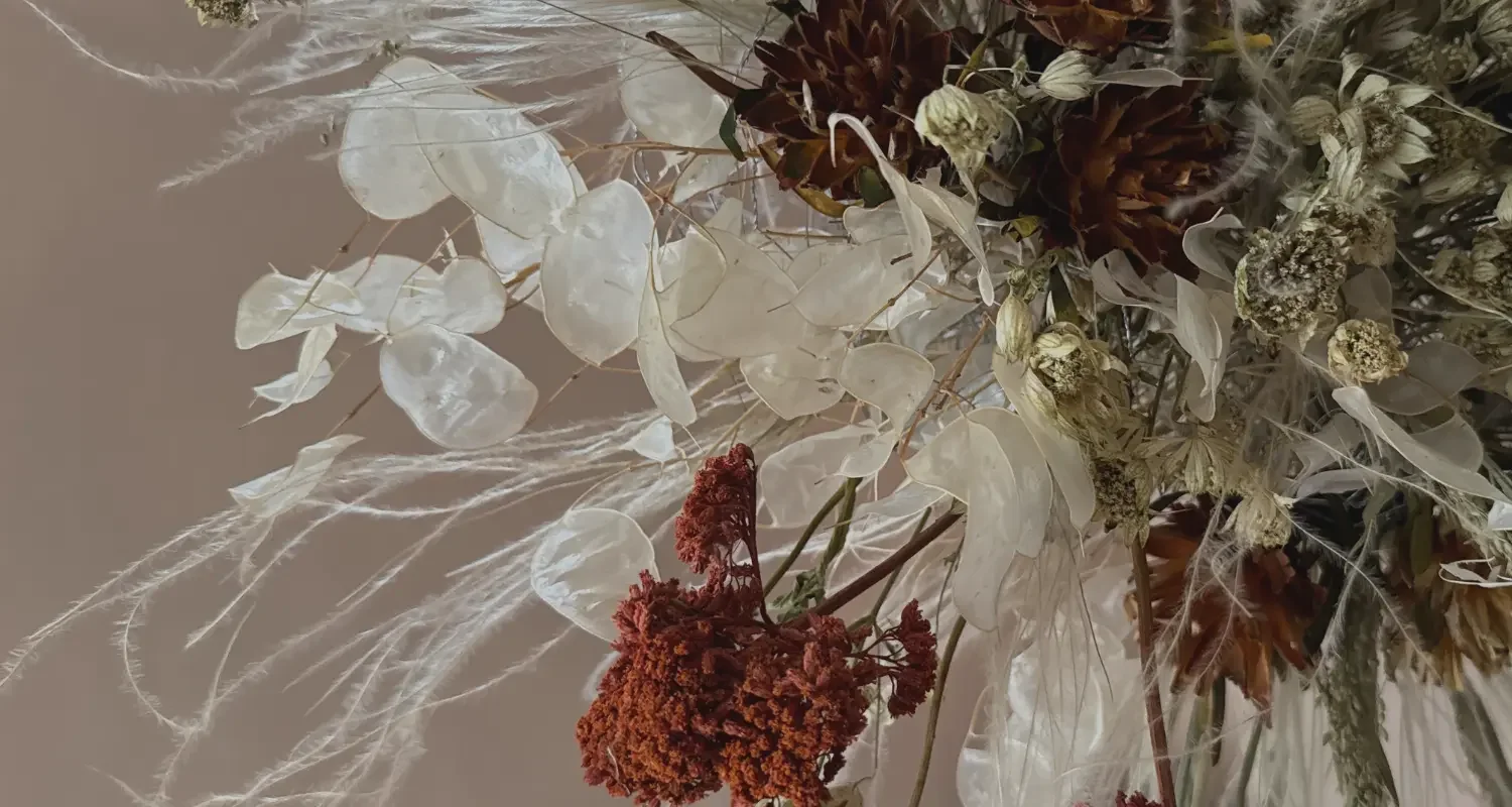 I then design a bespoke floral plan tailored to your interior style — from colour palettes and textures to installation scale and placement. Each dried flower arrangement is handcrafted with lasting materials and a focus on natural, sculptural beauty.