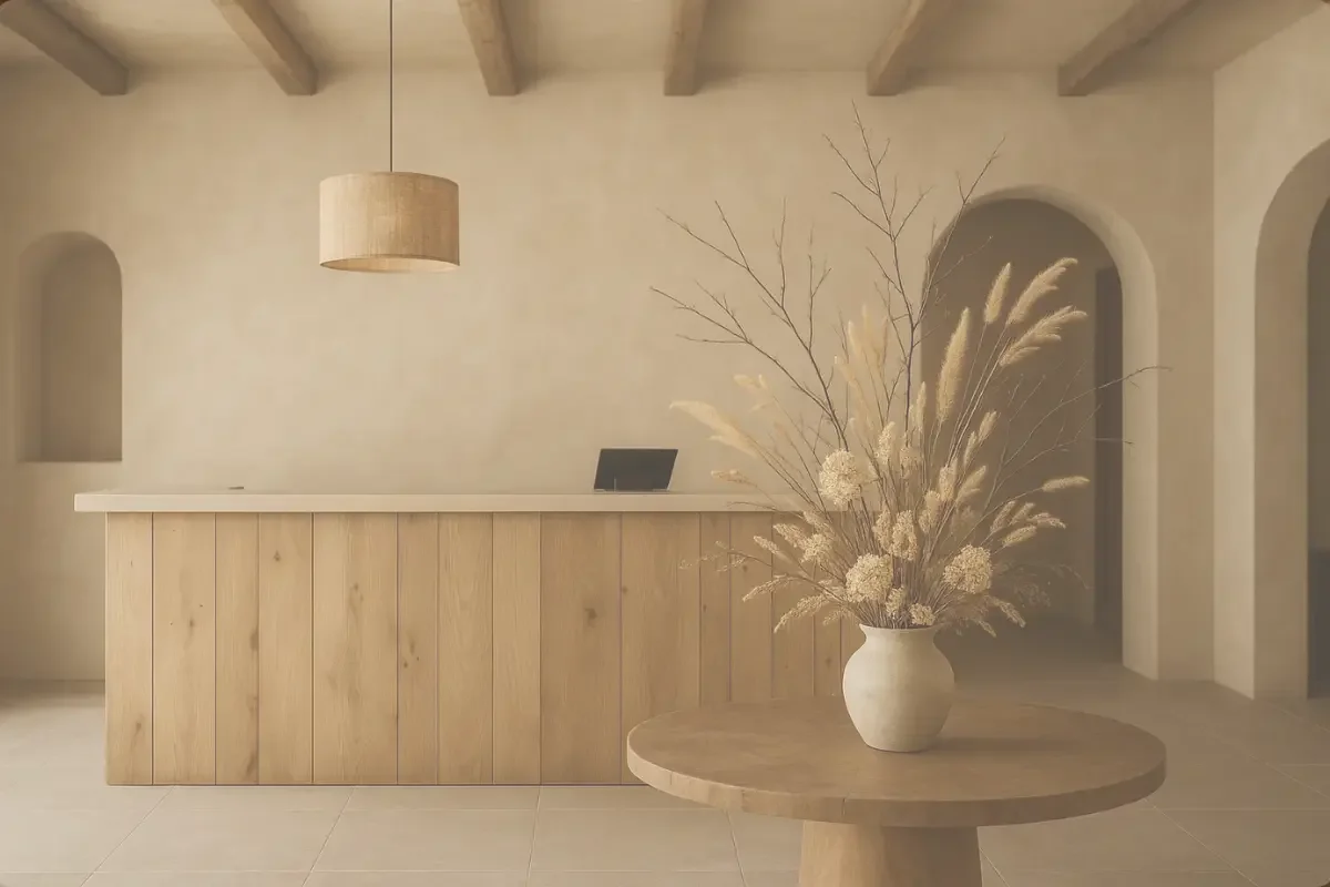 From soft Mediterranean neutrals to sculptural dried floral forms, my approach to boutique hotel decor celebrates atmosphere, texture, and storytelling.